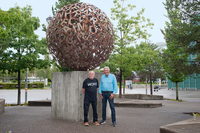 Heiko Schütz, ein Eisenplastiker aus dem Bernbiet, genauer gesagt aus Niederönz, hatte eine Kugel geschaffen, welche aus ausgeschnittenen Eisenbuchstaben bestand. Die Kugel hat einen Durchmesser von mehr als 2 Metern und wiegt etwa 1.2 Tonnen.